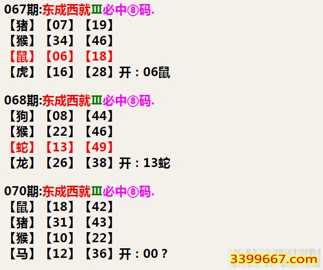 070期:东成西就Ⅲ必中⑧码