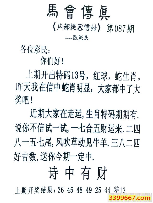 | 主题 :087期:首发推荐:≮馬會傳眞≯→(香港正版) |