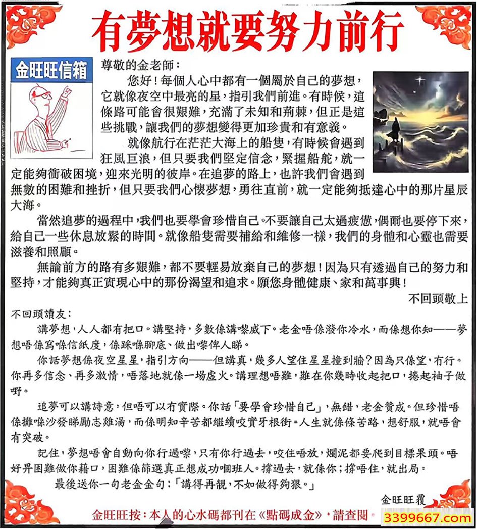 | 主题 :088期:金旺旺信箱彩民推荐→→《有夢想就要努力前行》 |