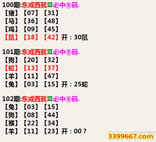 102期:东成西就Ⅲ必中⑧码