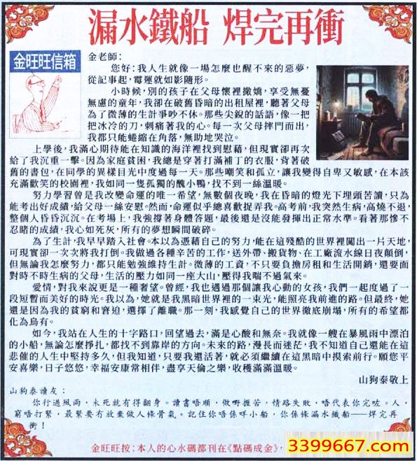 | 主题 :010期:金旺旺信箱彩民推荐→→《漏水鐵船 焊完再衝》 |