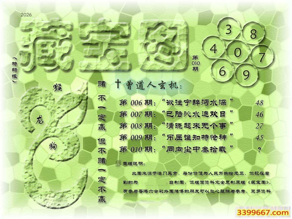010期藏寶圖 新:同向尘中叁拾载 老:秋槐叶落空宫里 禁:虎 禁:1尾