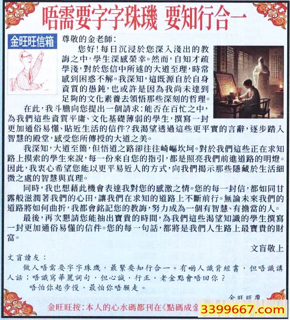 主题 :012期:金旺旺信箱彩民推荐→→《唔需要字字珠璣 要知行合一》