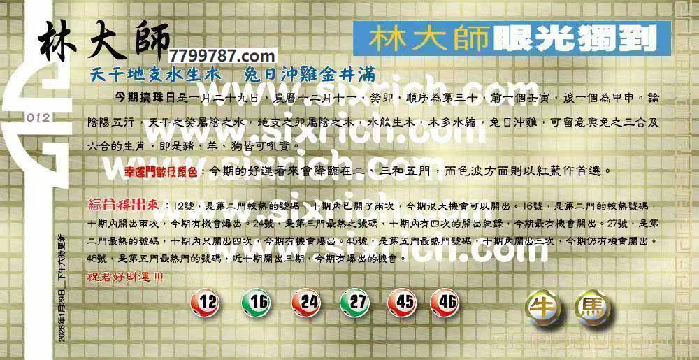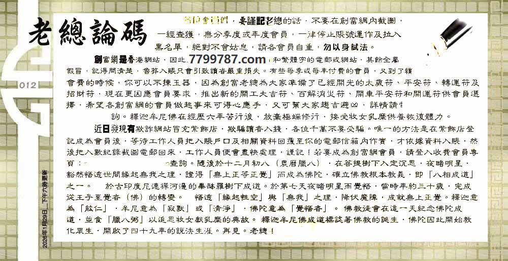 012期:六合皇金句/老总论码/萧公子/林大师/五行夺码/老总信箱截