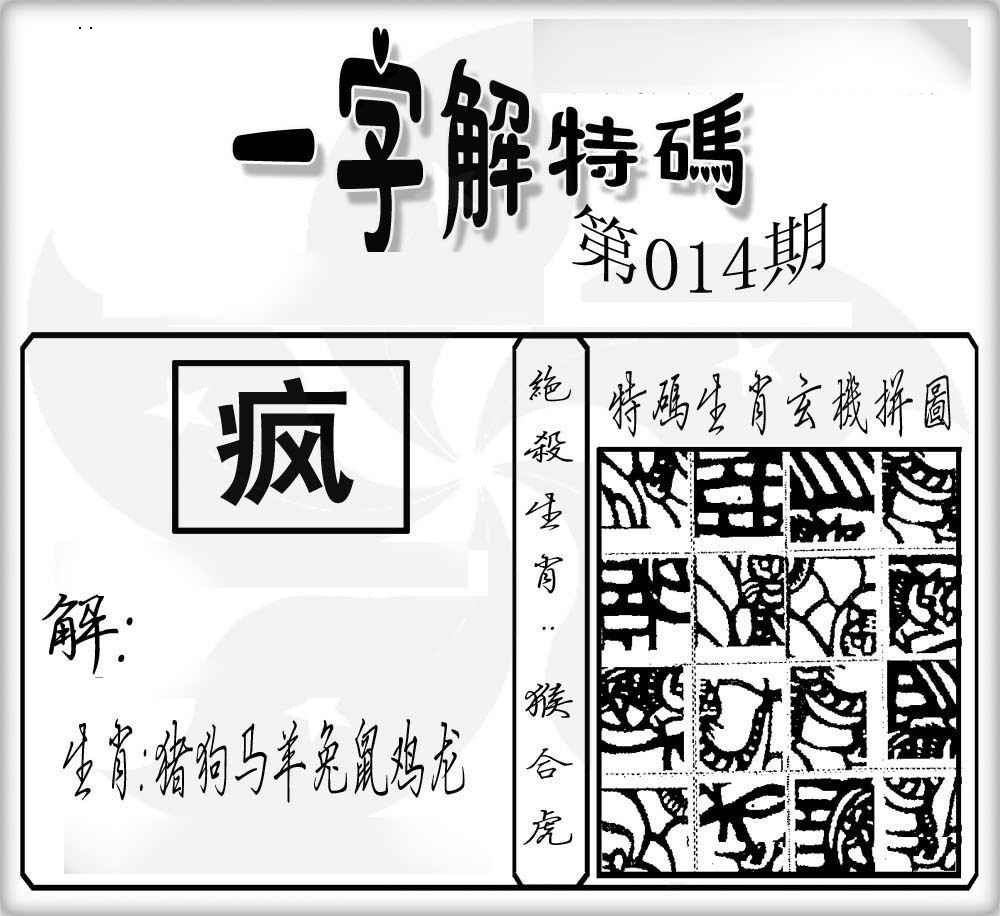 | 主题 :014期:一字解特码 |