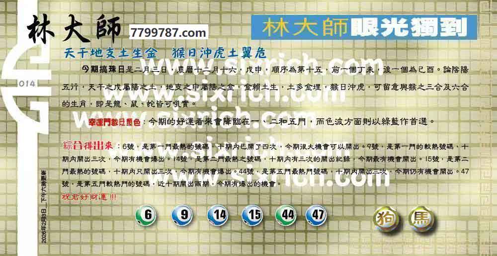 | 主题 :014期:六合皇金句/老总论码/萧公子/林大师/五行夺码/老总信箱截 |
