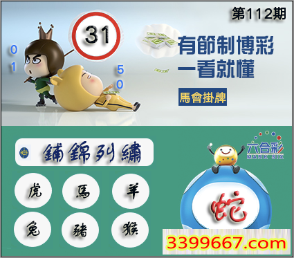 112期正版彩图挂:31 爆:蛇 挂牌成语:铺锦列绣 挂牌出肖:虎马羊兔猪猴