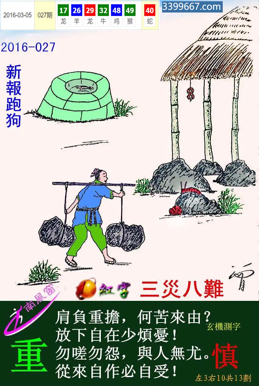 主题 :012期:新版跑狗一字記之曰【擔】 玄機測字:【俠】